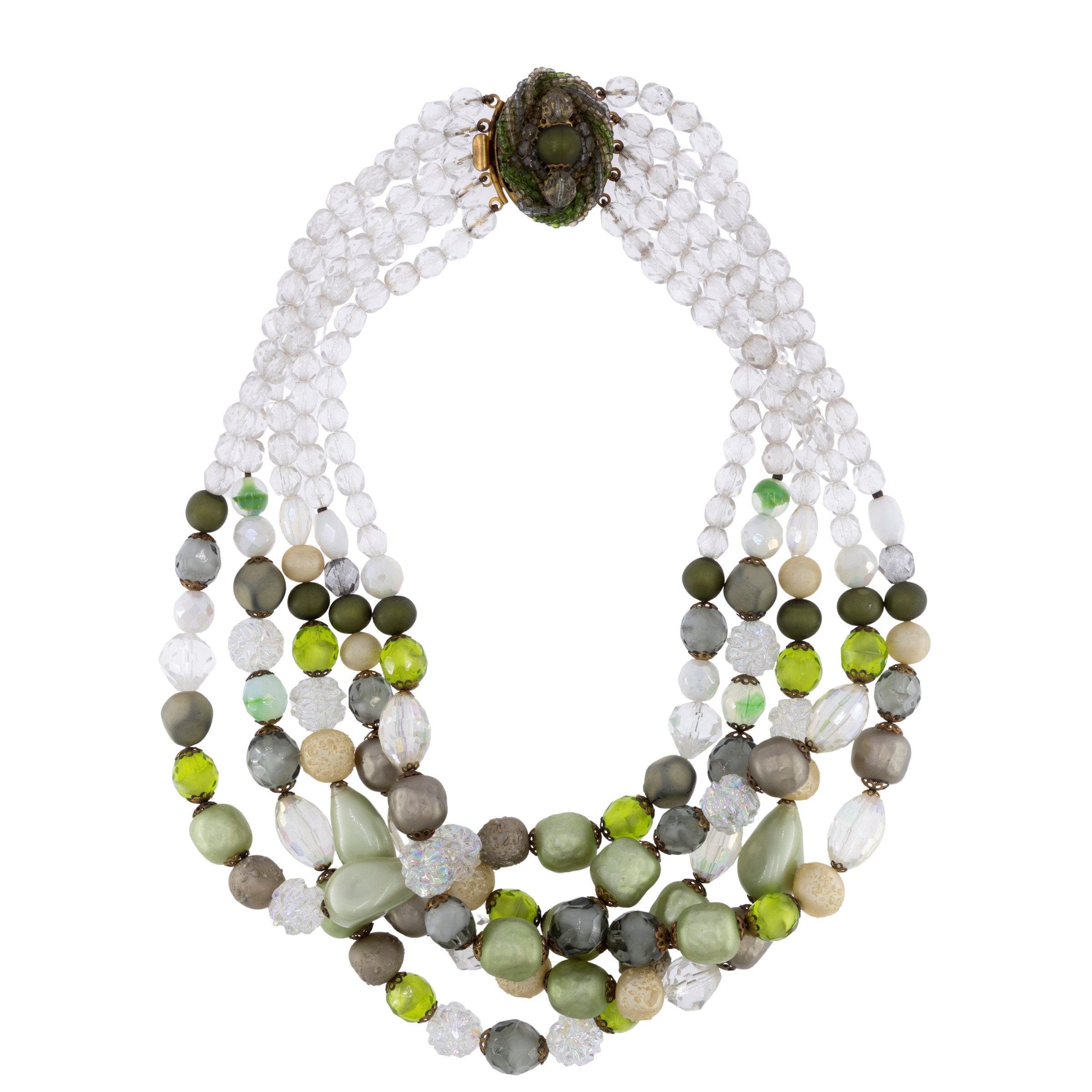 Collana bijou vintage in metallo dorato e pietre in resina colorata