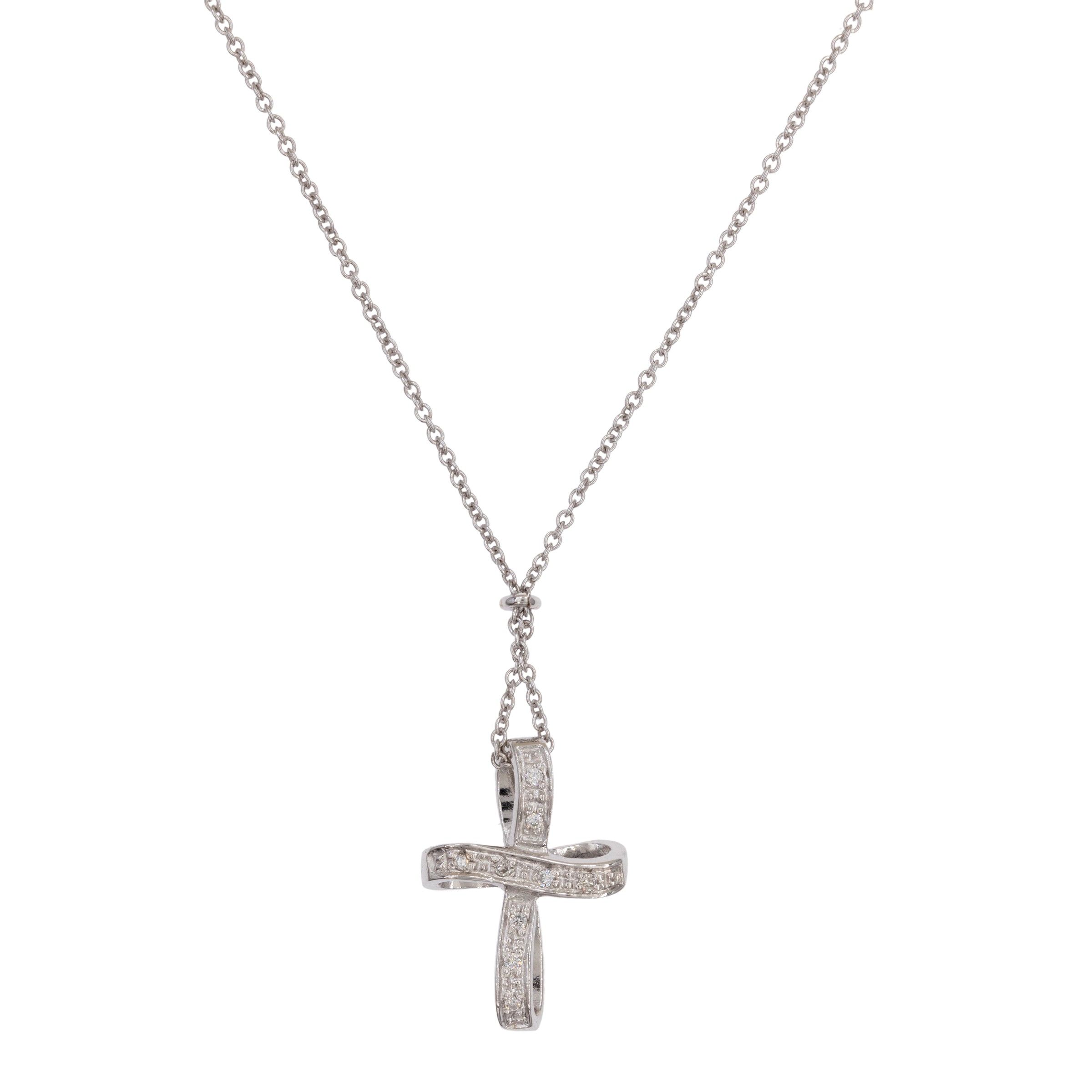 Collana con pendente a croce in oro bianco 18kt e diamanti