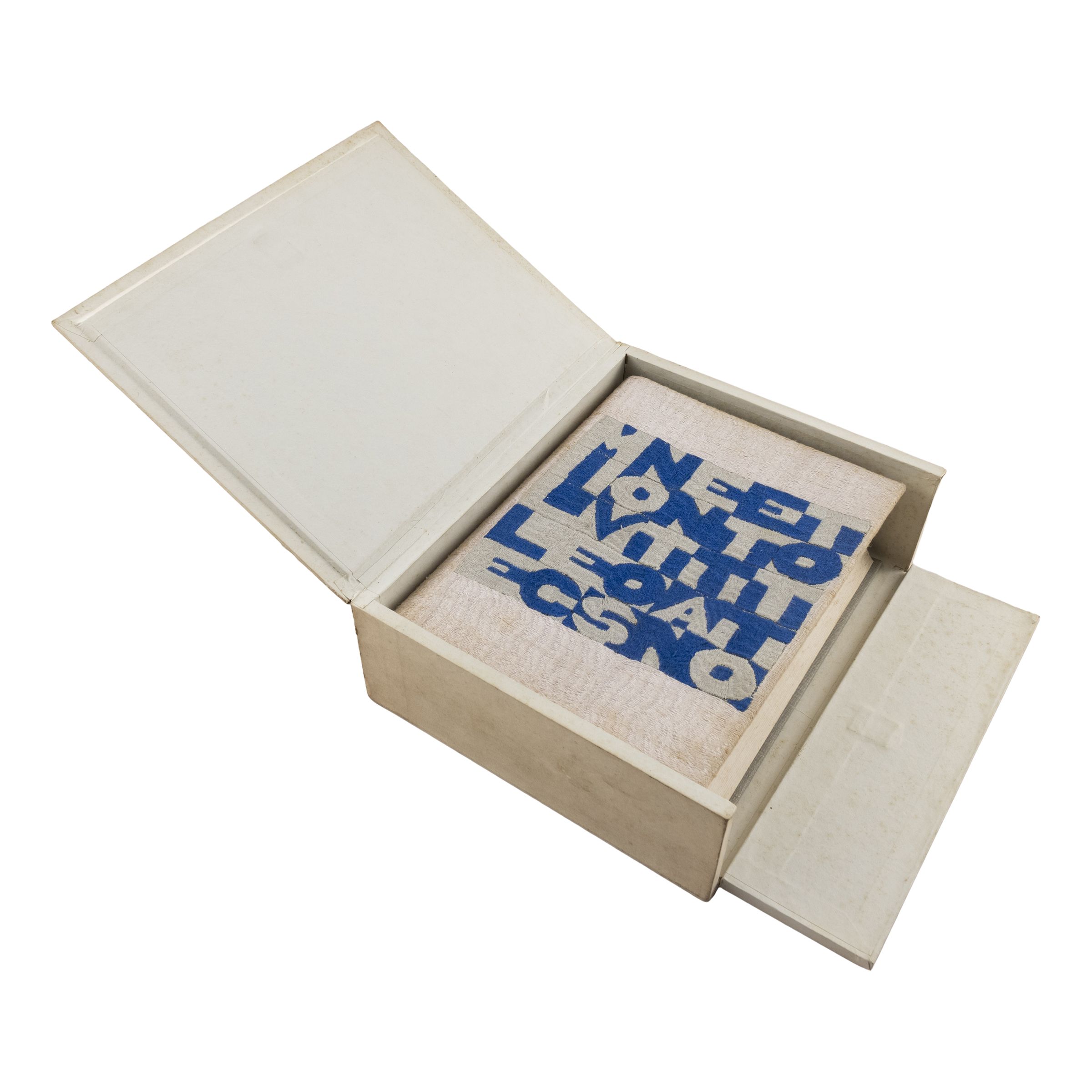 Torino 1940 - Roma 1994 'Classifying the Thousand Longest Rivers in the World', 1977, libro di 1016 pagine stampate tipograficamente con copertina ricamata, numerato e firmato '115 Alighiero e Boetti e Anne Marie S. Boetti' sulla seconda pagina, entro custodia originale in cartone pressato. Realizzato nel 1977; ed. n. 115 di 150 esemplari con copertina ricamata + 300 esemplari con copertina cartonata in tela rossa + 50 esemplari con numerazione romana + alcuni esemplari non numerati con copertina ricamata + alcuni esemplari siglati H.C. Opera registrata presso l'Archivio Alighiero Boetti, Roma, n. 10600, come da autentica su fotografia in data 28 gennaio 2025. Bibliografia: Jean Christophe Ammann, Alighiero Boetti. Catalogo generale, Milano 2012, vol. II, p. 271, n. 909
