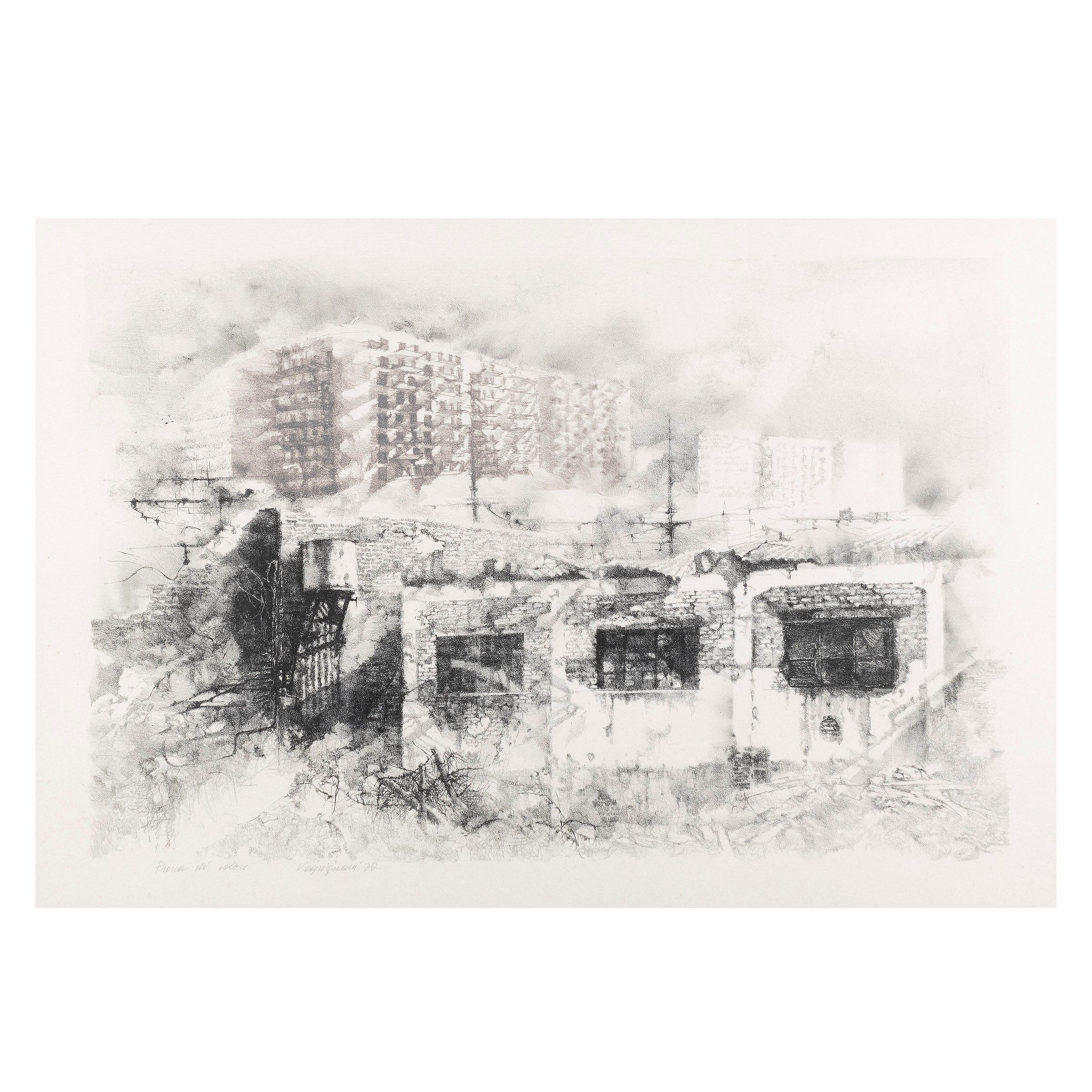 Roma 1924 - 2001 'Periferia', 1977, litografia, es. prova di colore, firmata in basso a sinistra, entro cornice