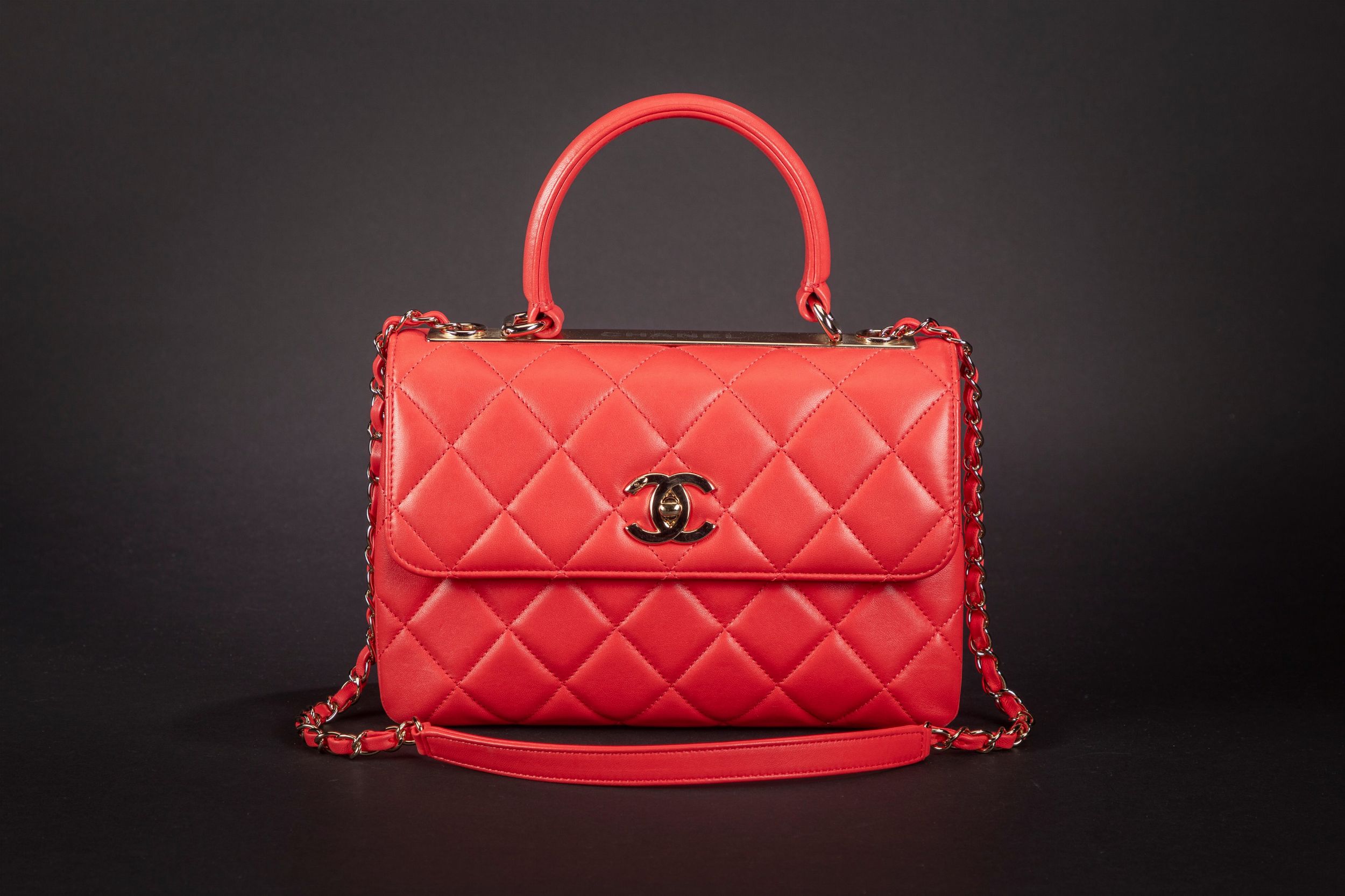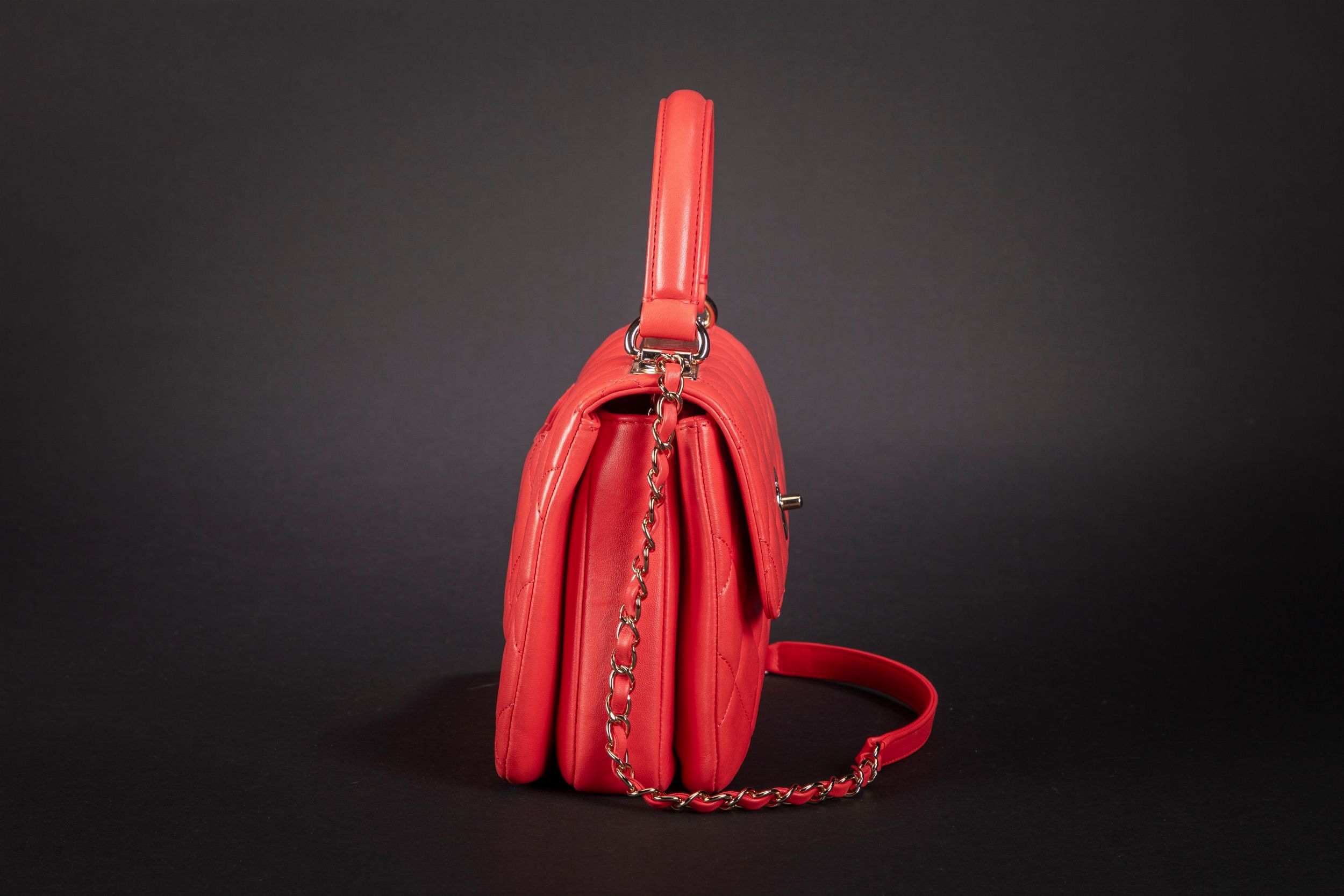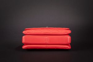 2019 in pelle matelassé color corallo, doppio scomparto interno, con tracolla staccabile, dettagli in metallo dorato, cm 25, con sacchetto (lievissimi difetti)