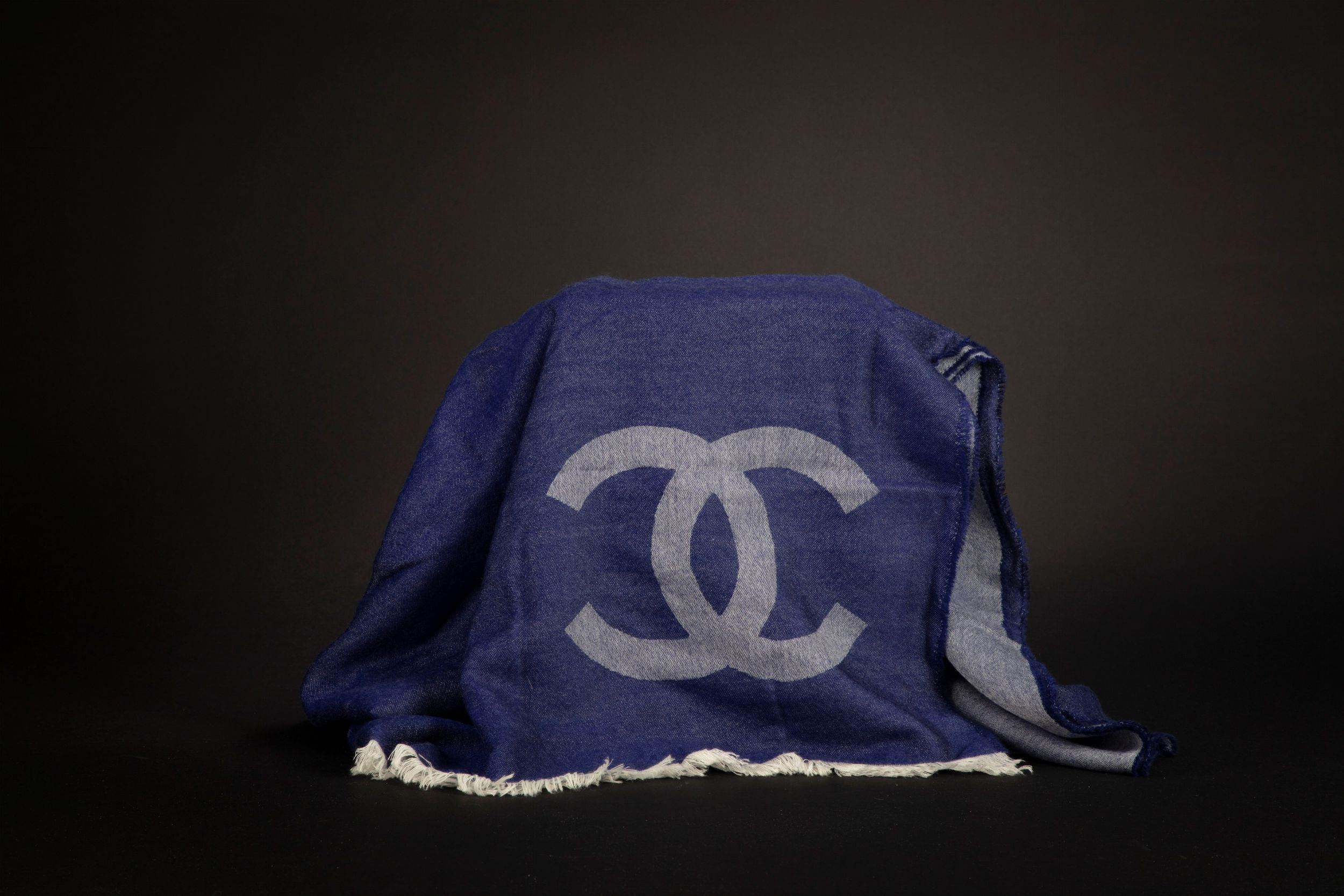in cachemire mélange blu, cm 140 x 200, con sacchetto