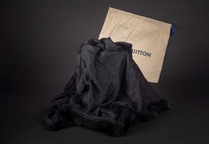 in seta e lana monogrammata, cm 140 x 140, con sacchetto (lievi difetti)