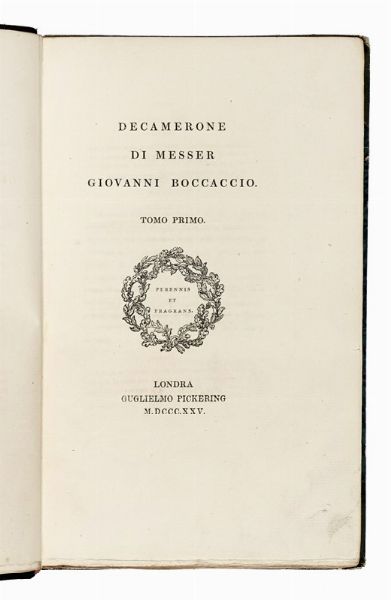 3 volumi in-8° (mm 222x135). Occhietto e frontespizio con marca xilografica all'inizio di ogni volume. Trascurabili tracce del tempo. Esemplare presumibilmente completo, ma non collazionato. Mezzo marocchino verde con piatti marmorizzati e titoli dorati al dorso con nervi.