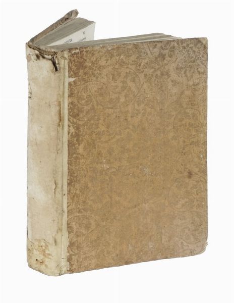 In-folio (mm 271x195) Carte: [1], XXXIII, XXXIIII (senza carta I), XXX, LXVIII, LIIII, LVI, XXXVIII, XI [i.e.5], qualche errore di impaginazione corretto da antica mano, esemplare scompleto. Qualche restauro marginale, timbro di collezione privata presente alla seconda carta e altri lievi segni del tempo. Contiene i seguenti 7 capitoli: Divi Laurentii Justiniani patriarchae Venetiarum de vita solitaria; Opusculum de contemptu mundi; Opusculum de spirituali interitu animae et de resurrectione eiusdem; De institutione et regimine praelatorum; De obedientia; De humilitate; De perfectionis gradibus epistolae. L'ultima parte riguarda uno scambio di lettere tra Lorenzo Giustiniani e papa Eugenio IV. Piatti in cartonato rivestiti in carta settecentesca con decori floreali dorati, titolo manoscritto al taglio inferiore (volume privo della pergamena che originariamente ricopriva il dorso).