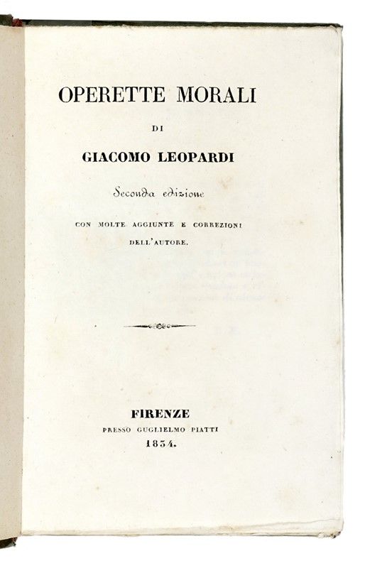 Operette morali [...] Seconda edizione con molte aggiunte e correzioni dell'auto [..]