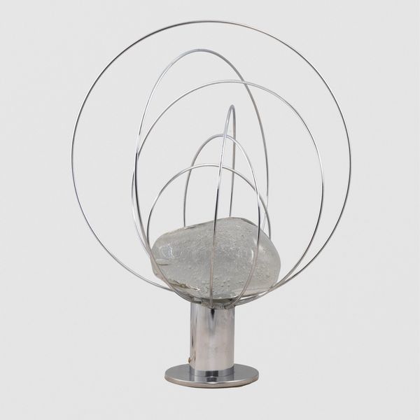 Italia, anni 70 lampada da tavolo mod. Barnaba in metallo cromato e vetro trasparente a bollicine