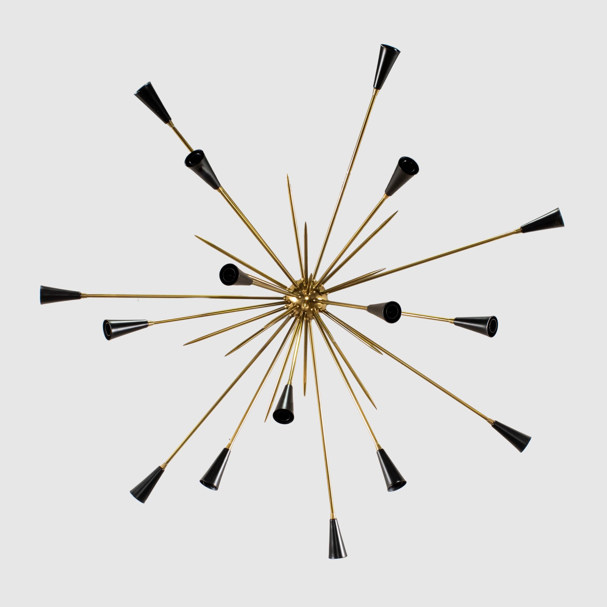 anni 50 lampada da parete o soffitto mod. Sputnik in ottone e metallo verniciato, lievi usure