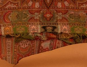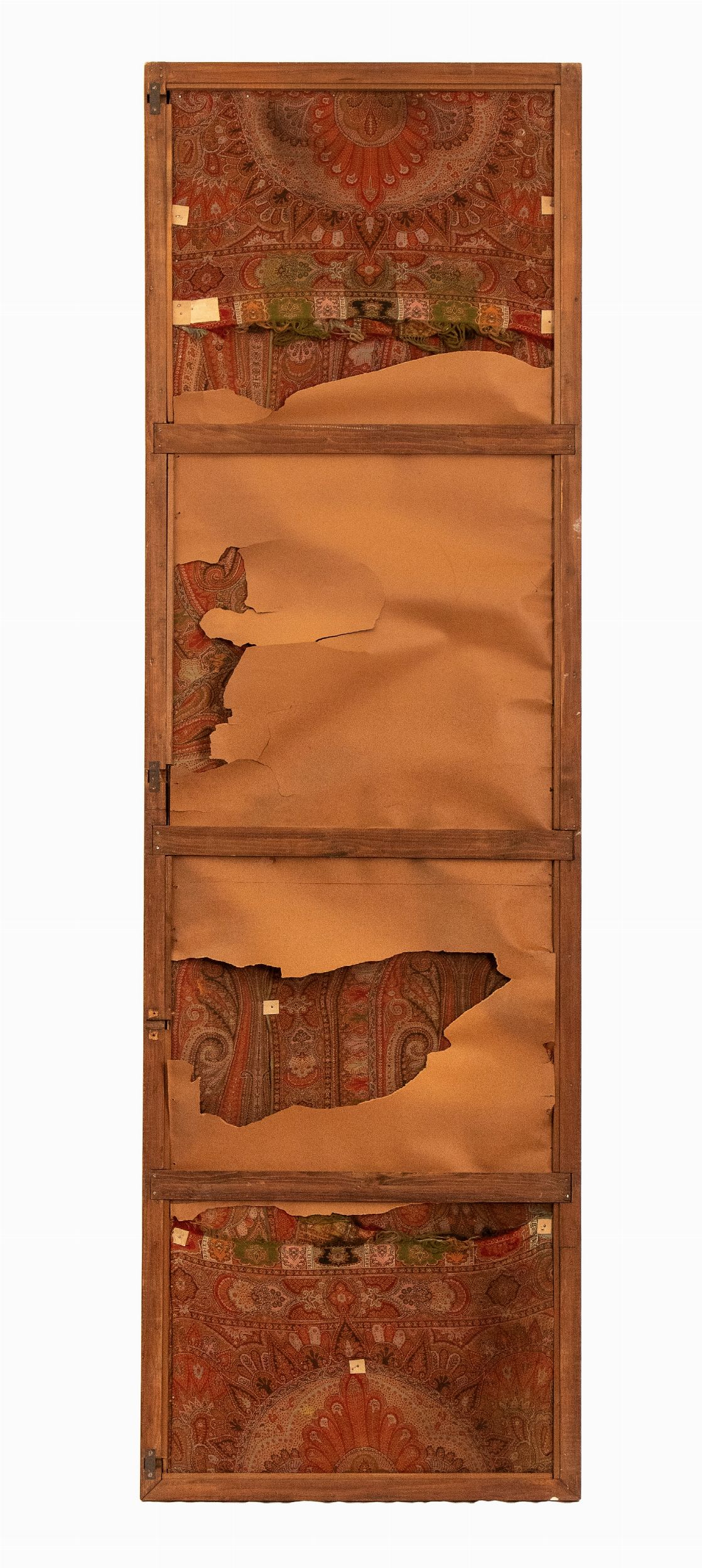 XX secolo di forma rettanglare decorato ad arabeschi e code di pavone. Entro cornice dorata.