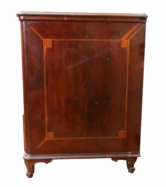 XVIII secolo in legno di noce e intarsi geometrici in legni di frutto. Ferramenta originale.