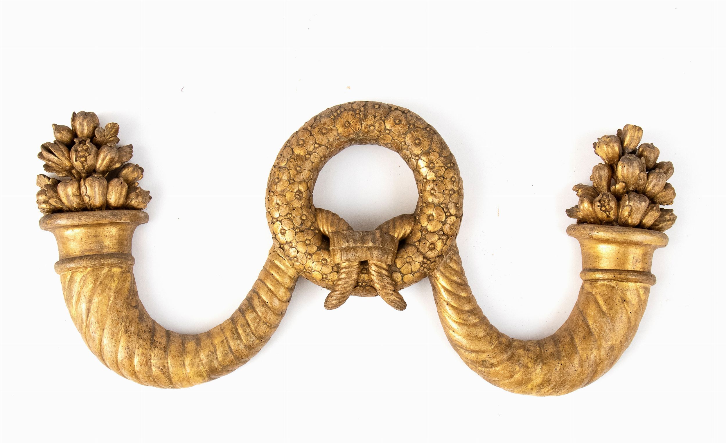 XVIII-XIX secolo tre fregi intagliati a motivi vegetali e animali, uno con orologio.
