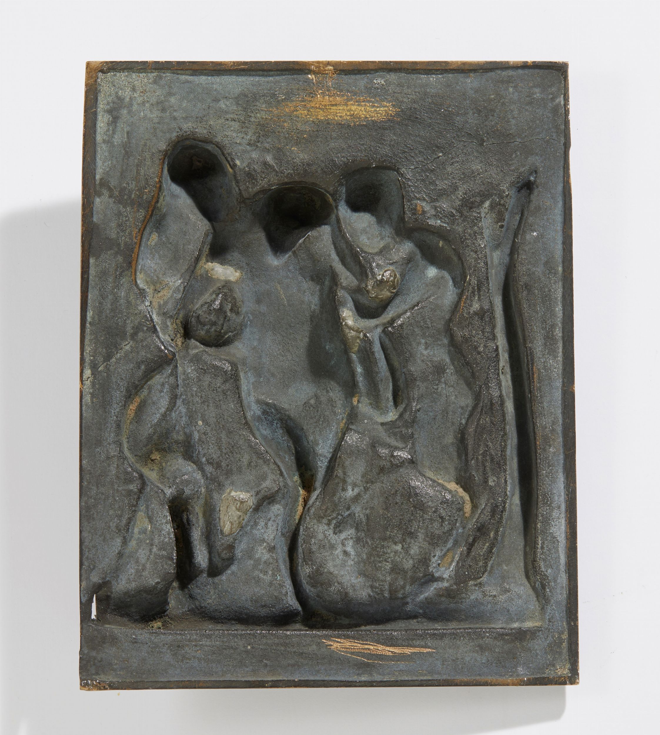 Placchetta rettangolare in bronzo con patina marrone scuro; mm 200 x 155.