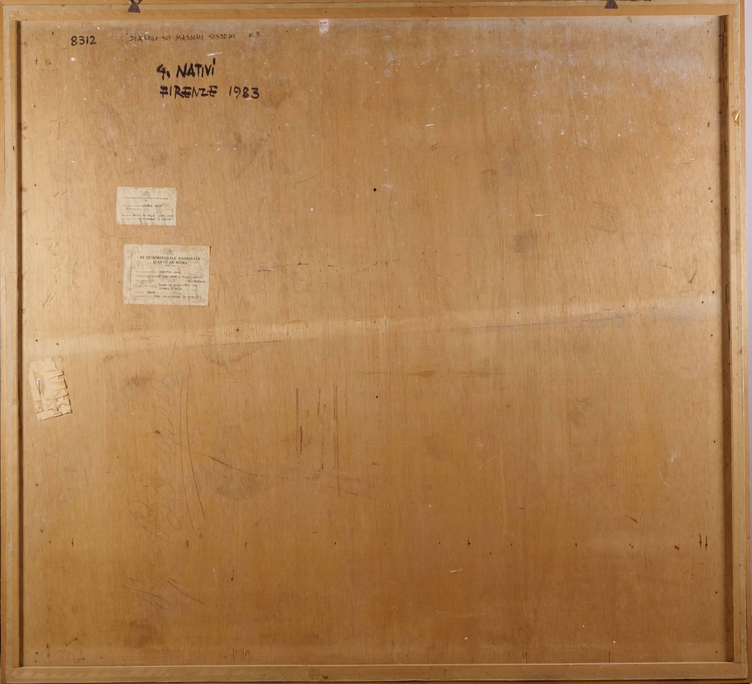 1983 Firmato in basso a destra. Sul verso: firma, data, titolo ed archivio n° 8312. Etichette 'XI Quadriennale Nazionale d'arte di Roma 1986' con descrizione.