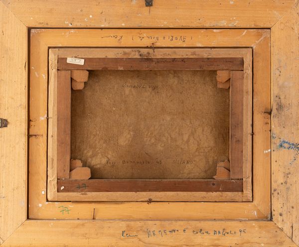 firmato in basso a destra: gigicomolli al retro: sulla tela, firma e indirizzo del pittore ( Foro Bonaparte 48 - MILANO ); sul telaio, dedica di mano dell'artista ( Alla signorina ...).