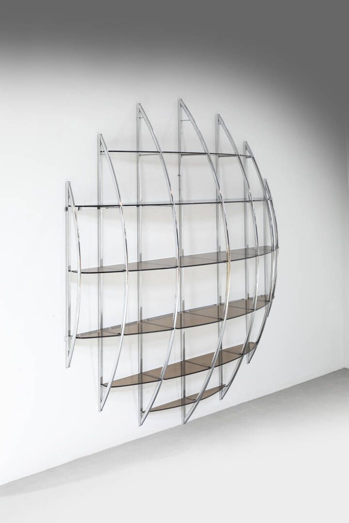 Struttura in acciaio e piani in vetro fumè. Prod. Nikol International anni '70 cm 220x188x44 Piccole sbeccature