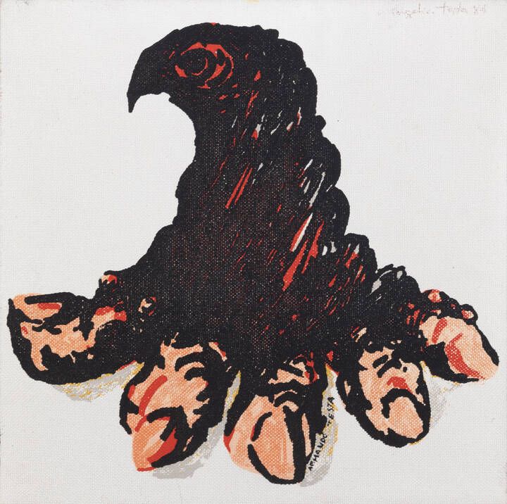 33 5x33 5 serigrafia su masonite Opera firmata in basso al centro e al retro con data e titolo. In alto a destra presente firma dell'autore e seconda data (forse di donazione all'attuale proprietario in data '84)