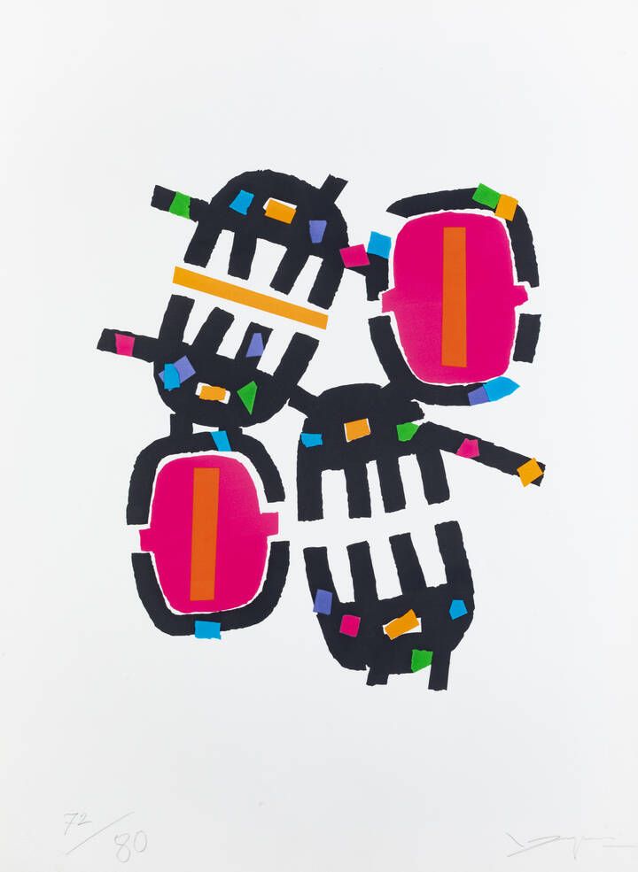 76x56 litografia es. 72/80 Opera firmata in basso a destra e numerata in basso a sinistra (a matita); timbro a secco della Erker Press St. Gallen in basso a sinistra Bibl.:-Ulrike Von Hase Schmundt (a cura di) Capogrossi: Das graphische Werk Erker San Gallo (Svizzera) ripr. in b/n n. 105 p. 118