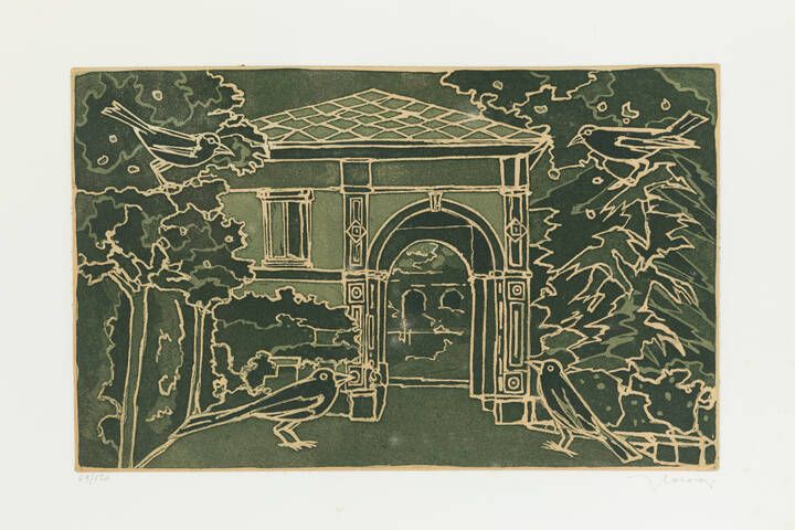 FRANCESCO CASORATI Torino 1934 - 2013 : Paesaggio con architettura e uccelli  - Asta Grafica - Associazione Nazionale - Case d'Asta italiane