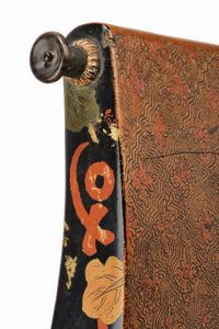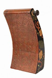Periodo Edo (1603-1867) In legno, di forma inusuale, rettangolare e incurvata. La superficie finemente laccata in Makie con fantasia Hanabishi. Con tappo originale. Tardo periodo Edo.