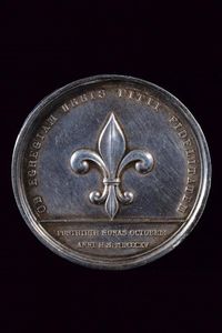 Regno delle Due Sicilie, diametro 4.8 cm. 1815 Rarissima medaglia per l’arresto di Gioacchino Murat a Pizzo Calabro, in argento. Al dritto 'FERDINANDUS IV UTRIUSQUE SICILIAE REX P F A', nel campo bellissima testa coronata del Re a destra. Al rovescio giglio borbonico e iscrizione al bordo 'OB EGREGIAM