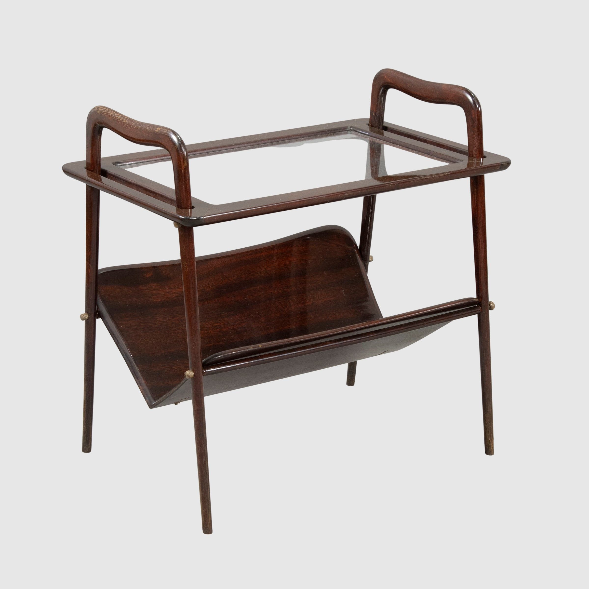 Italia, anni 50 tavolino in legno e vetro trasparente