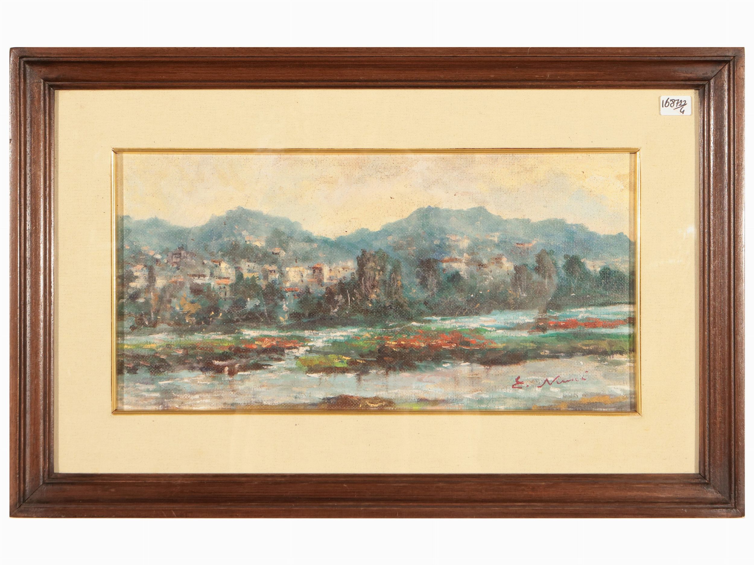 Raccolta di quattro dipinti, uno firmato, in cornice