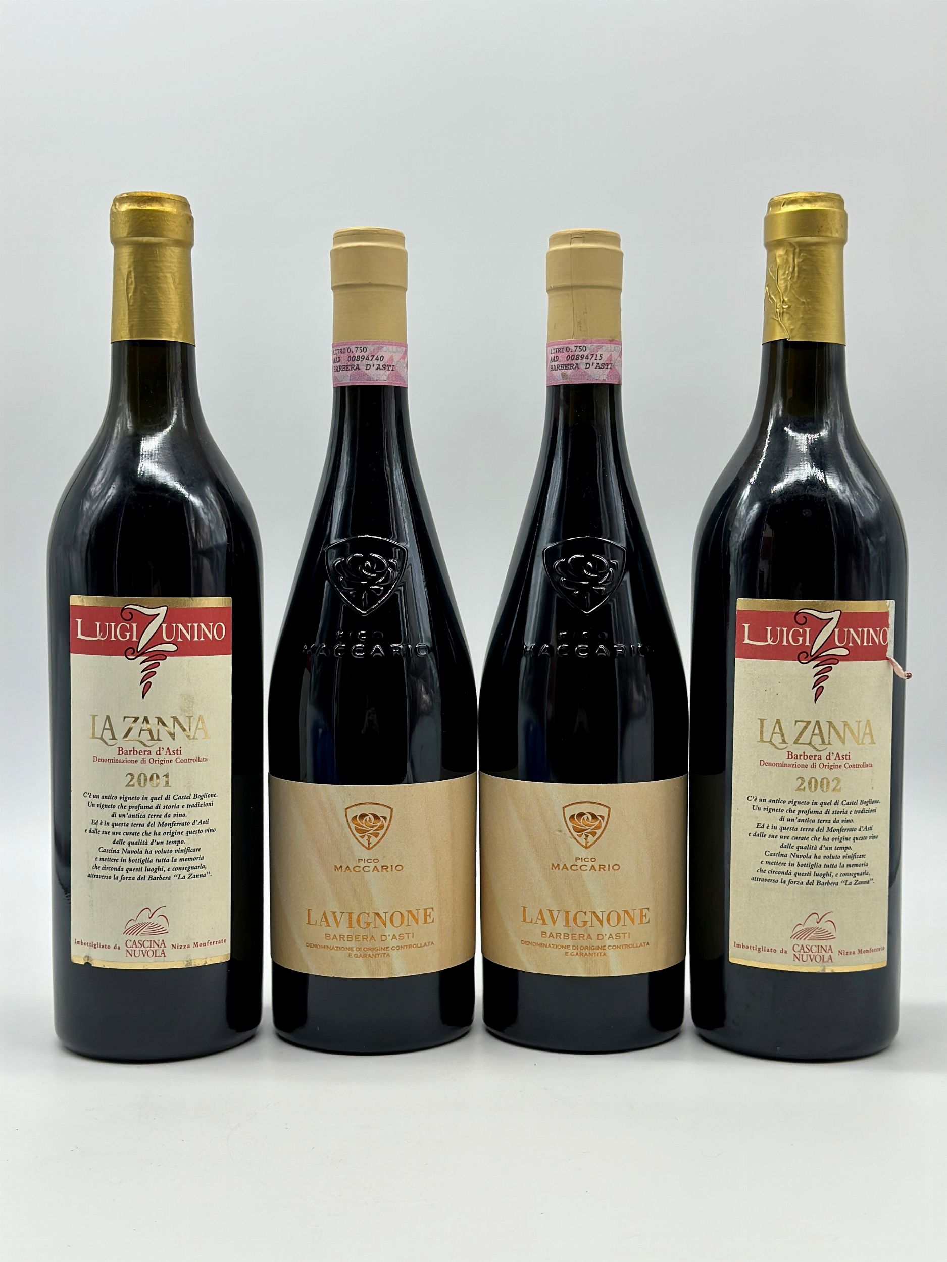 Piemonte, Selezione Asti - 4 bottiglie (bt), annate 2001 e 2002.
