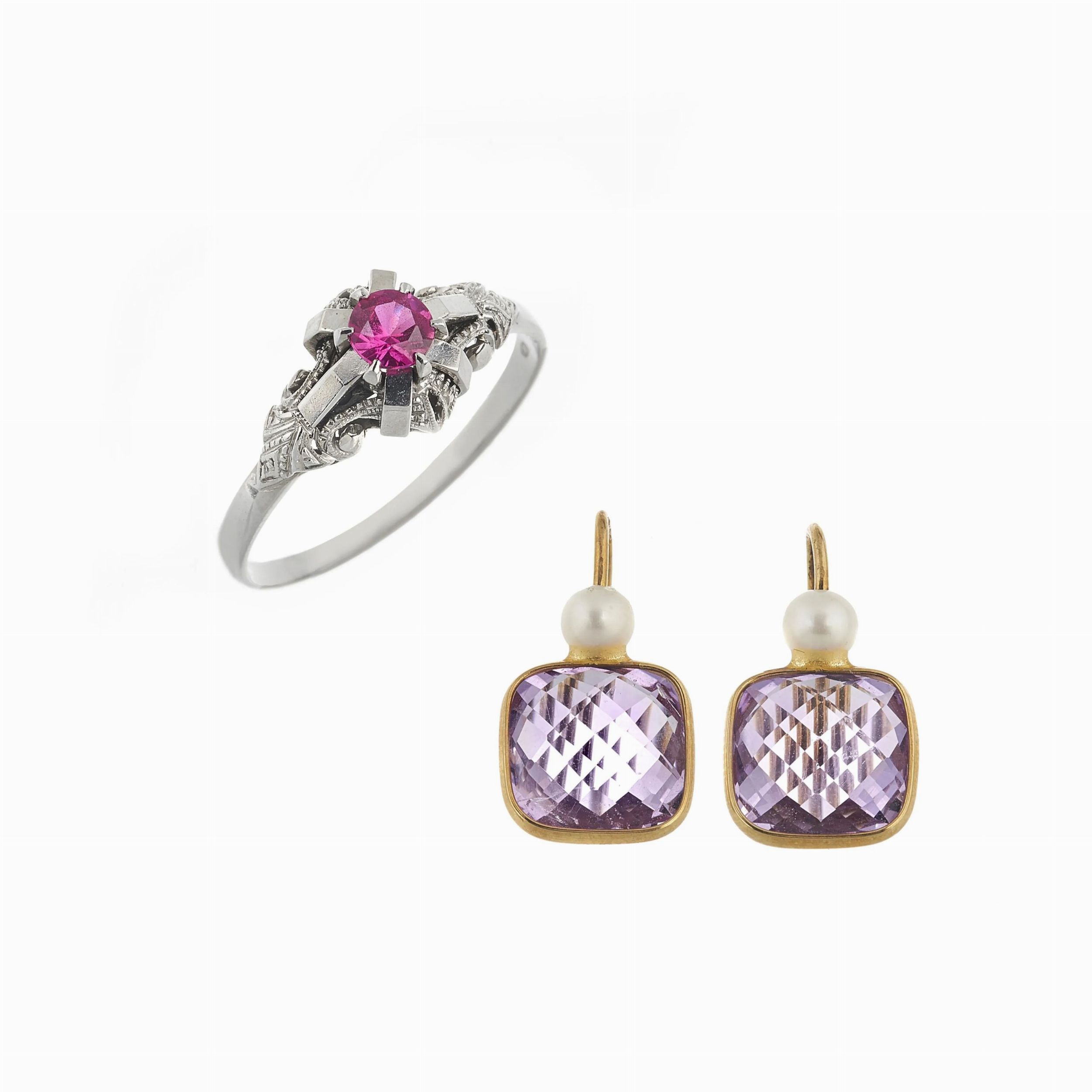 ANELLO CON PIETRA SINTETICA E PAIO DI ORECCHINI