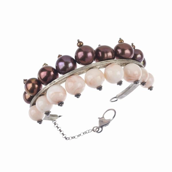 BRACCIALE RIGIDO CON PERLE E PIETRA DURA