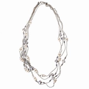 LUNGA COLLANA CON IMITAZIONE DI PERLE E ANELLO realizzata a doppio filo di sfere di mm 7 circa, fermatura in [..]