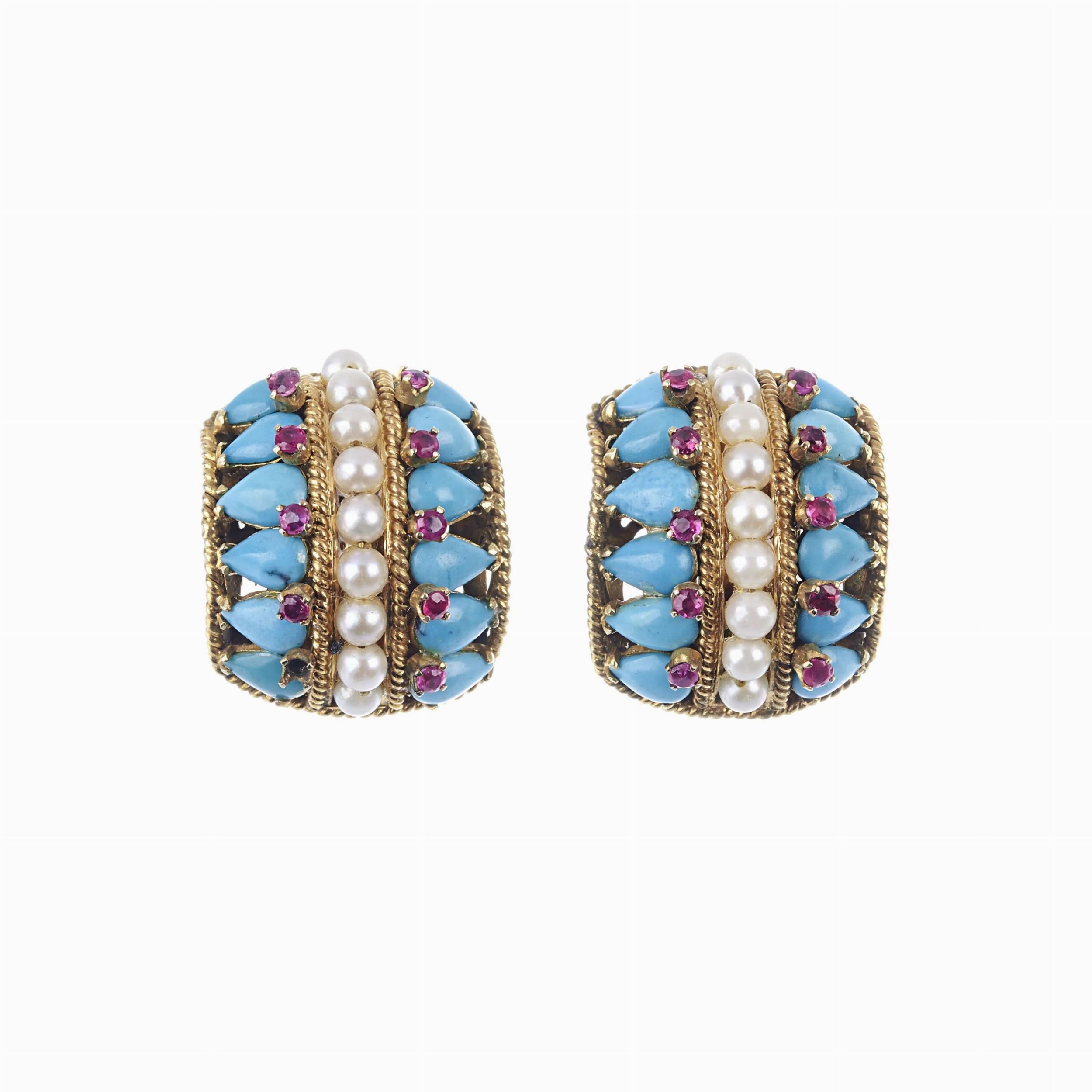 PAIO DI ORECCHINI CON TURCHESI PERLE E RUBINI