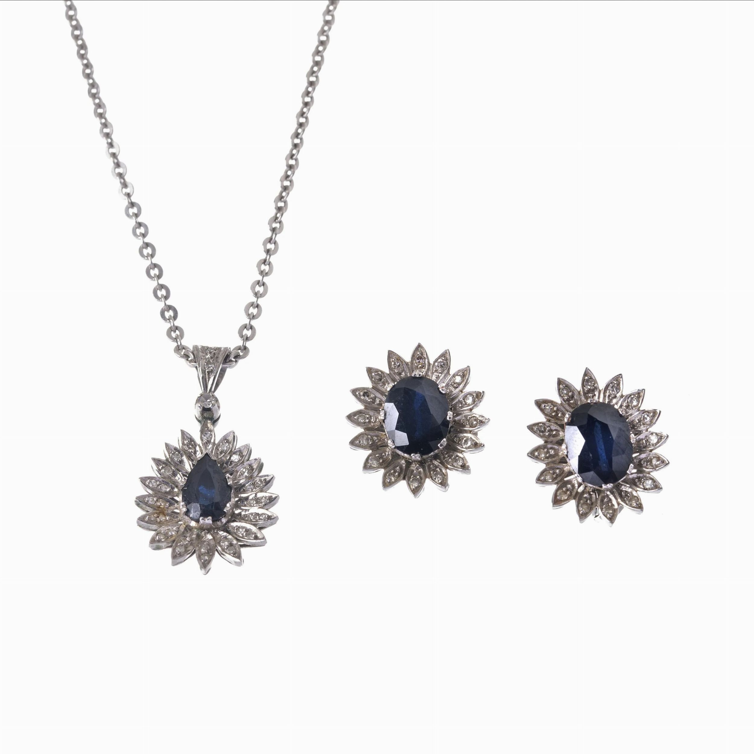 UNOAERRE DEMI PARURE FLOREALE CON ZAFFIRI E DIAMANTI