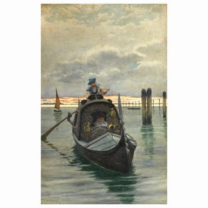 Giovanni Battista Todeschini (Lecco, 1857 - Milano, 1938) BARCHE IN LAGUNA olio su tela, cm 50x70 [..]