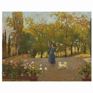 Francesco Gioli (San Frediano a Settimo, 1846 - Firenze, 1922) GIOCHI DAVANTI LA CASA DEL PITTORE A FAUGLIA [..]