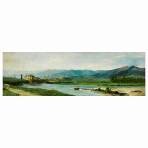 Attribuito a Giuseppe Ciardi (Venezia, 1875 - Quinto di Treviso, 1932) PAESAGGIO FLUVIALE olio su cartoncino, [..]