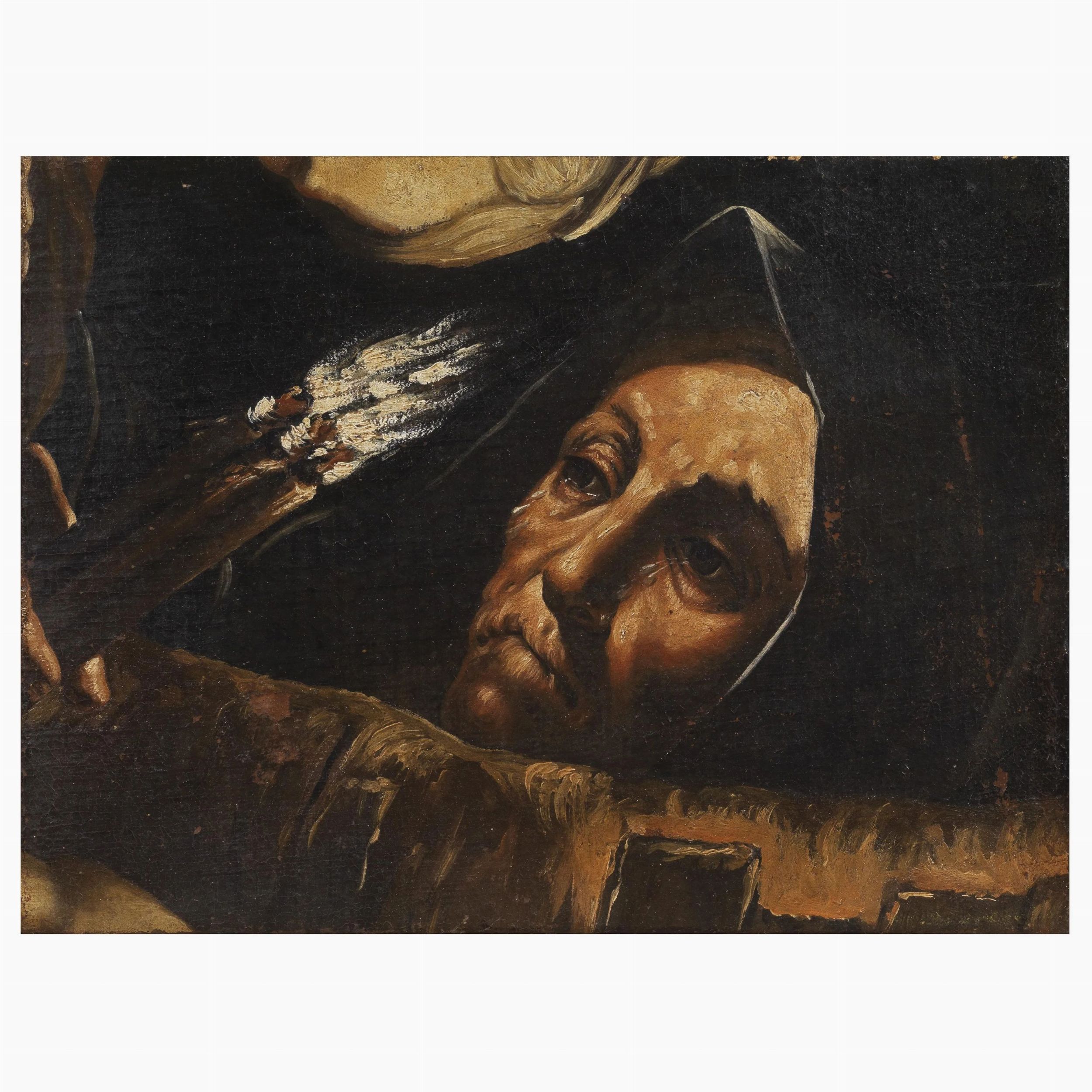Maestro del San Sebastiano, sec. XVII SAN SEBASTIANO CURATO DA IRENE E PIE DONNE coppia di dipinti, olio su tela, cm 44x32 e 30x39,5 (2) Master of Saint Sebastian 17th century SAINT SEBASTIAN CURED BY IRENE AND PIOUS WOMEN oil on canvas, cm 44x32 and 30x39,5, a pair (2) Le tele sono due frammenti facenti parte di una composizione più ampia e complessa rappresentante San Sebastiano curato da Irene e dalle pie donne. Di questa composizione ne esistono almeno altre tre versioni con minime varianti, una esposta nell’edizione del Tefaf di Maastricht del 2024 da Maurizio Nobile Fine Art, una nota solo da una fotografia conservata nella Fototeca di Federico Zeri a Bologna e, infine, una terza al Museum of Fine Arts di Yekaterinburg (forse una copia). Tale iconografia è una delle più diffuse dell’ambito caravaggesco del Seicento e vede lo spazio dominato dal corpo di San Sebastiano illuminato a lume di candela. È stato ipotizzato che il Maestro del San Sebastiano possa trattarsi di un pittore franco-olandese attivo a Roma tra il terzo o il quarto decennio del XVII secolo, uno tra quelli, come ricorda Giulio Mancini “che vanno e vengono”. Bibliografia di riferimento Il Maestro del San Sebastiano, a cura di A.L. Ametta, T. Borgelli, M. Nobile, Maurizio Nobile Fine Art, Sagep Genova 2024.