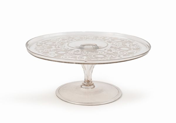 Alzata in vetro incolore con decorazione satinata