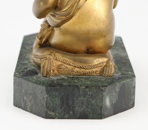 bronzo dorato su base in marmo verde, cm 12x14x8