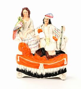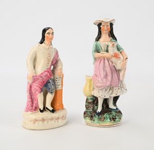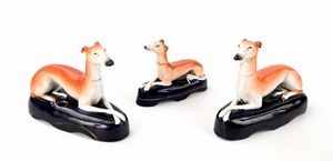 cm 9x9x6,5 raffiguranti una capra con cucciolo su base a forma di zolla erbosa, modellate per essere disposte [..]