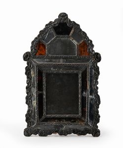 Piccola specchiera in legno e lamina di metallo argentato sbalzato, Olanda, XVIII [..]