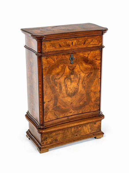 Piccolo credenzino in noce e radica di noce, Lombardia, XVIII secolo