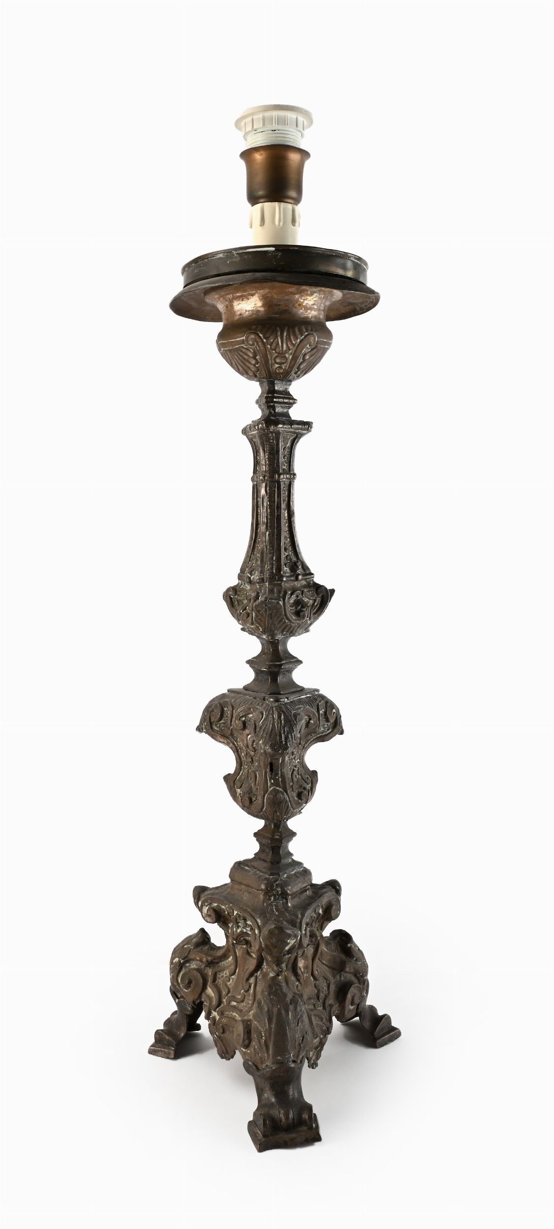 Torciera in legno rivestito di metallo sbalzato a motivi vegetali, XVIII secolo