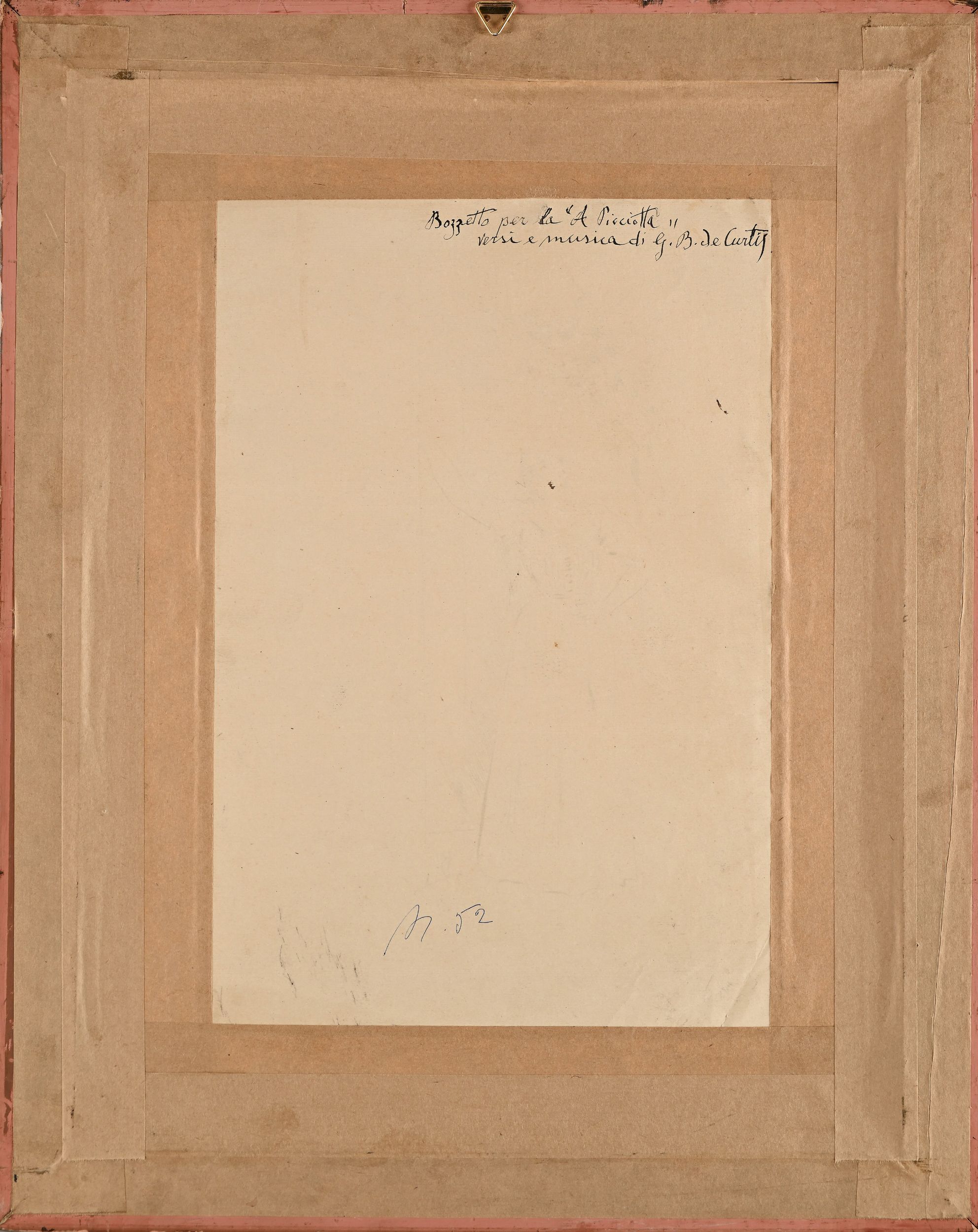 Sul retro vecchia scritta: 'Bozzetto per la 'A Picciotta' versi e musica di G.B. de Curtis'.