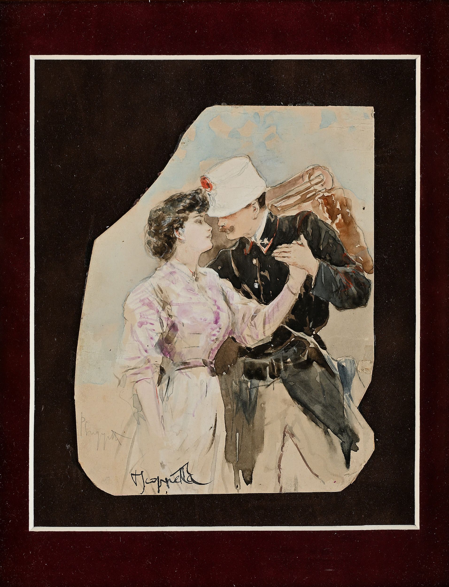 Firmato due volte in basso a sinistra: 'P. Scoppetta'. Sul retro titolo, timbro 'Ditta F. Bideri' e numeri di riferimento.