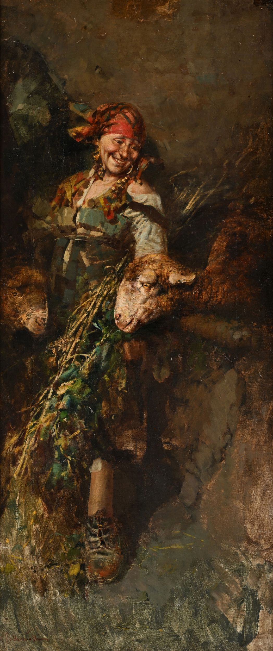 Contadina con due pecore