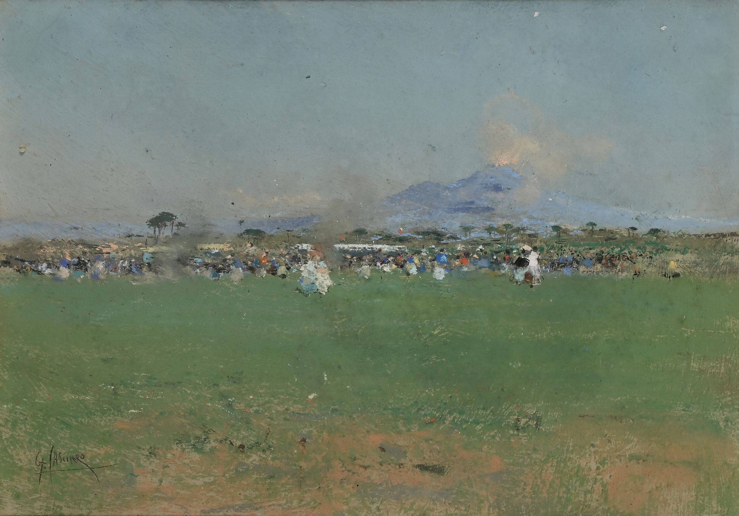 Firmato 'G. CASCIARO in basso a sinistra. Sul retro antico cartellino in francese con riferimenti al dipinto.