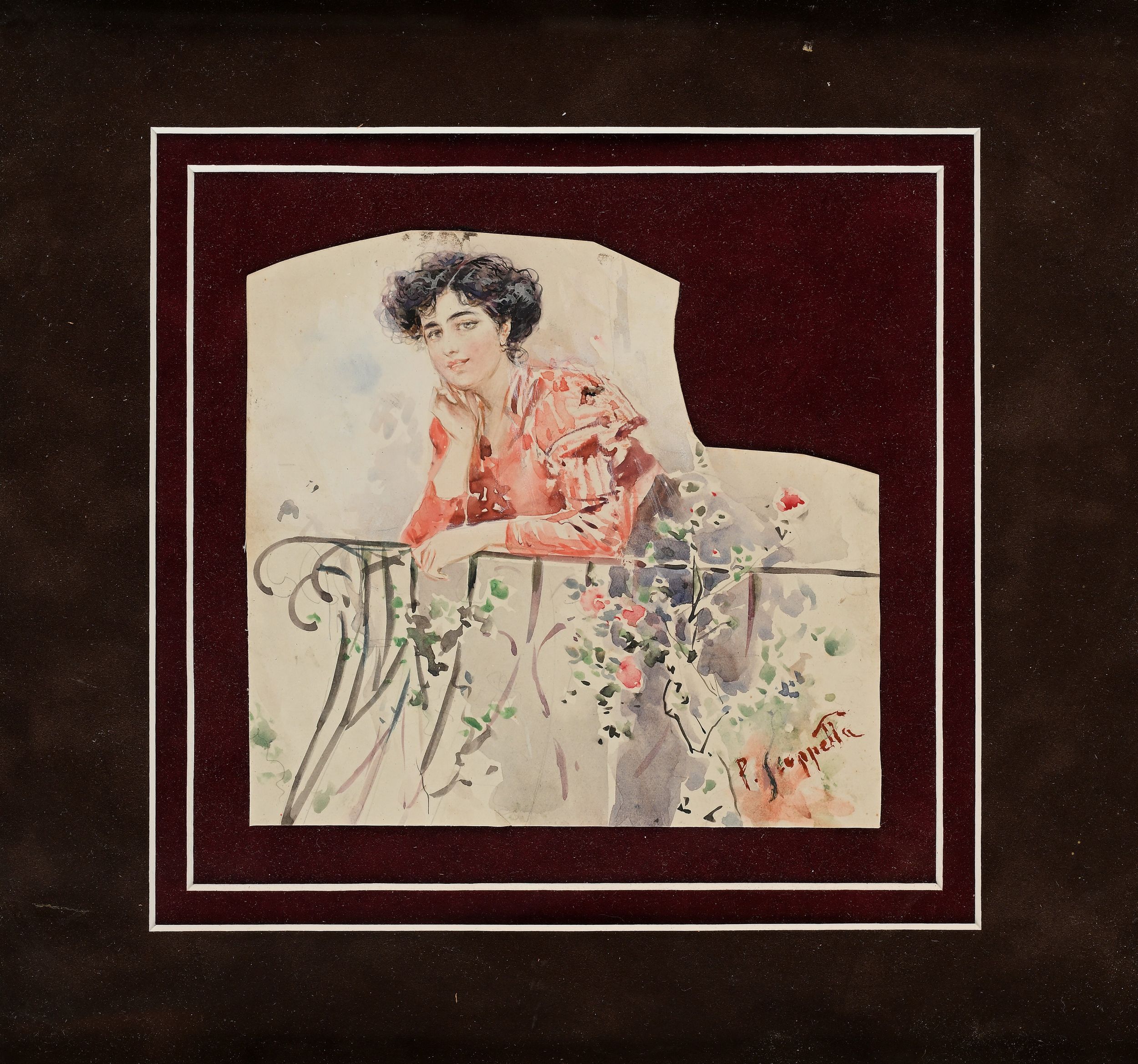 Matita e acquerello su cartoncino, cm 15,7 x 16,8 - in cornice cm 38 x 40