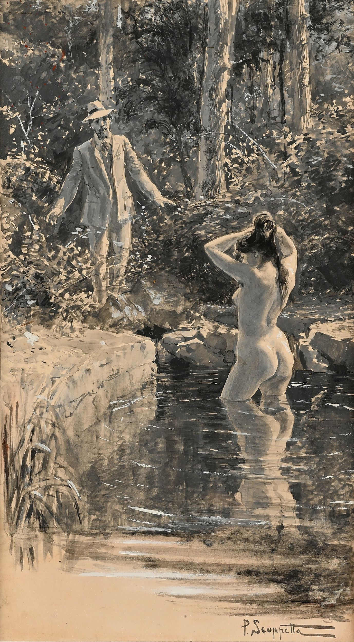 China, acquerello e biacca su cartoncino, cm 25,7 x 14 - in cornice cm 48,5 x 39