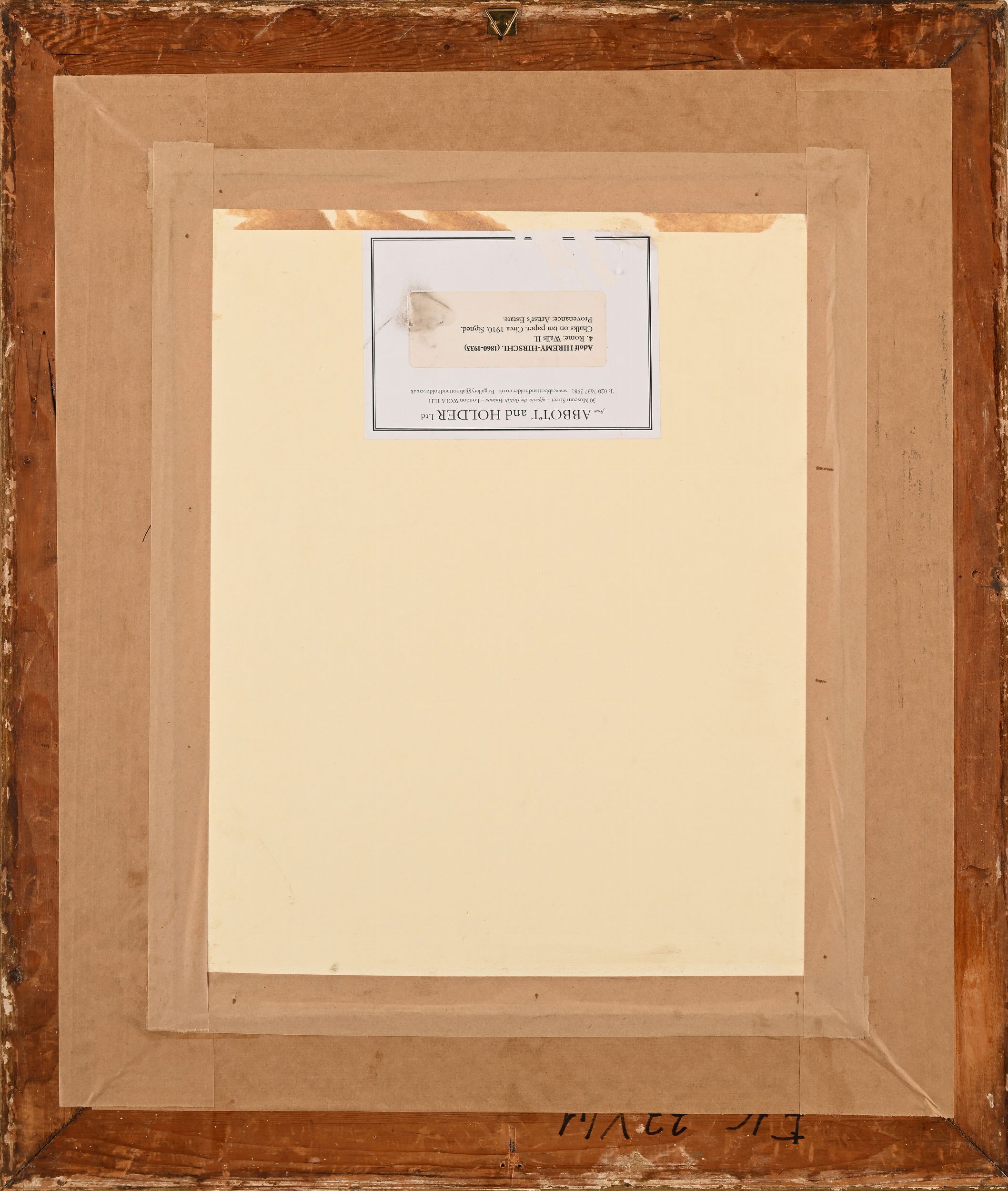 Siglato: 'A. H.' in basso a destra. Sul retro cartellino a stampa: 'from ABBOTT and HOLDER Ltd, 30 Museum Street, London' con scritti i riferimenti al dipinto.