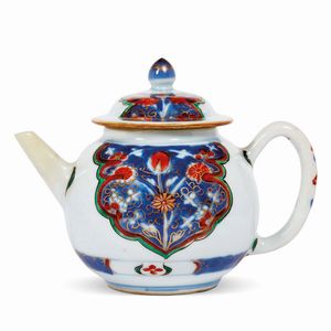 TEIERA, GERMANIA, MANIFATTURA DI FRANKENTHAL (?), SECOLO XVIII in porcellana dura dipinta in policromia, corpo [..]